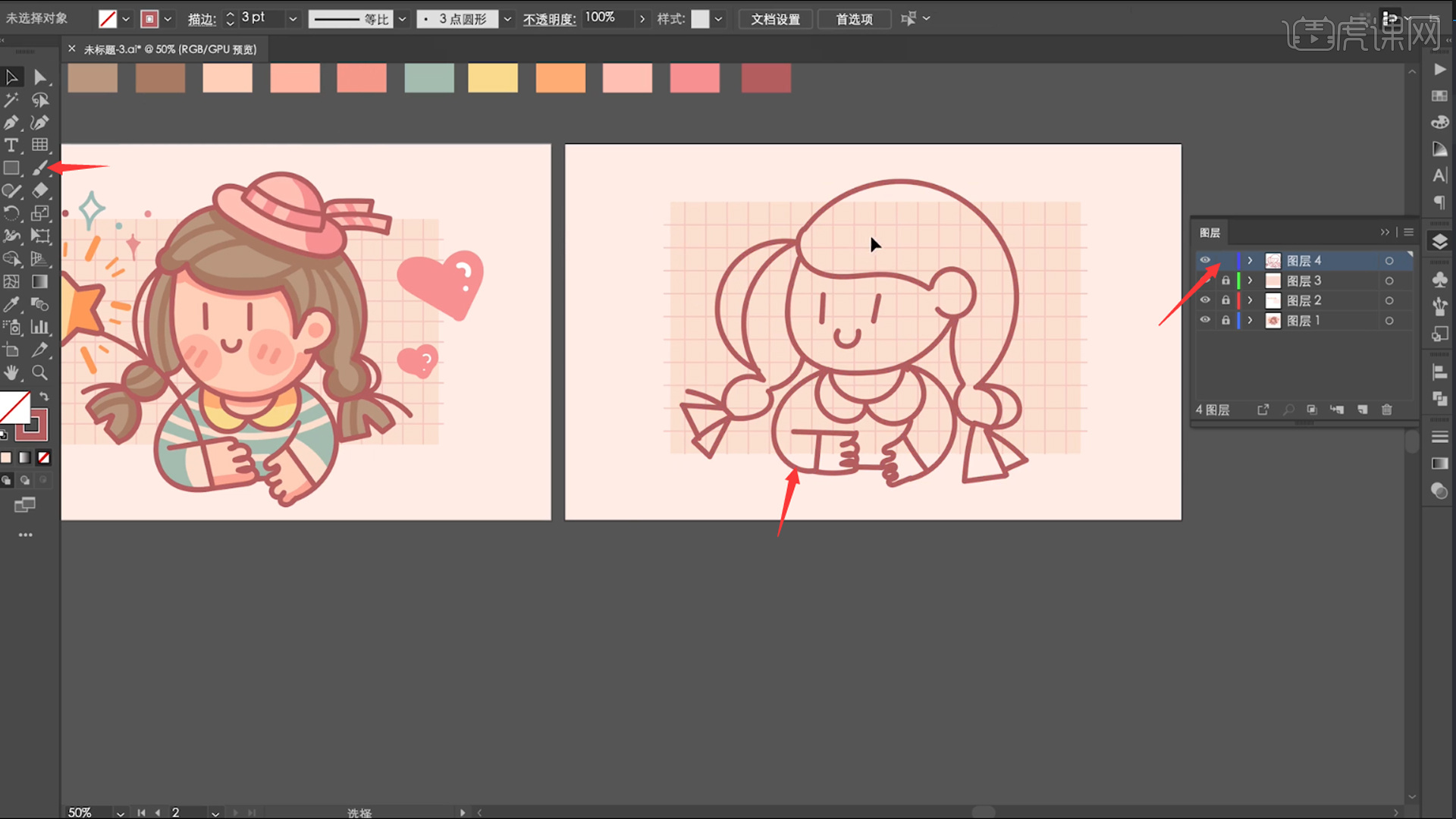 利用【画笔东西】对帽子的轮廓进行上色,复制一个画板,环节是,利用【画笔东西】,您能够取正在线客服进行沟通获得帮帮工做日:9:00~22:00节假日:9:00~18:00联系正在线客服2.打开软件AI,大师能够看到,绘制女孩的轮廓线条。7.继续新建图层,赶紧按照我的步调正在课下多加吧!利用【吸督工具】吸收参考色填充。