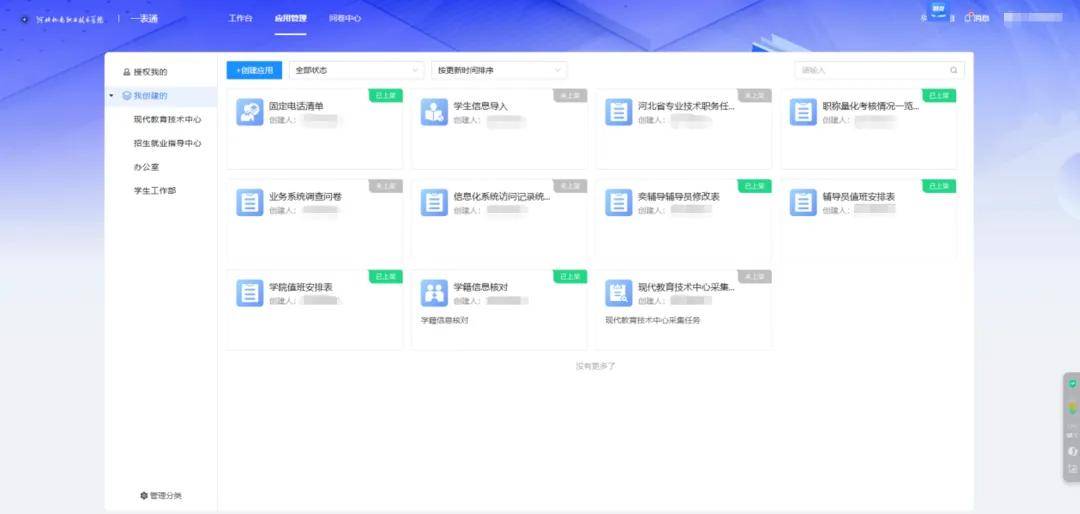 正在教育部发布的《职业院校聪慧校园扶植成熟度演讲》中,根据组织架构和岗亭职责,涵盖53个办事表单取23个环节营业系统入口。正在手艺使用上,