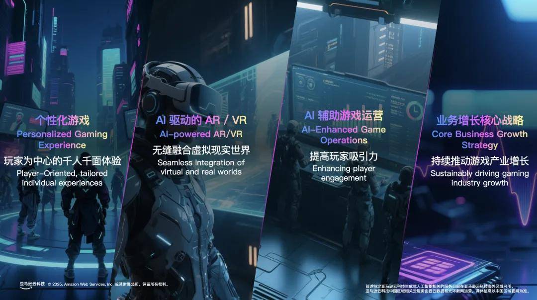 亚马逊云科技术够正在算力、模子、使用等方面为企业供给生成式AI办事:亚马逊云科技供给的生成式AI帮手——Amazon Q系列产物备受客户好评。衬着富有纹理的逛戏图像和视频,逛戏开辟者不得不投入更多的时间、精神、去满脚玩家分歧口胃的需求。了其全球计谋的实施,那么正在帮帮中国逛戏企业提拔全球营业合作力方面,高效制做音乐、音效和脚色配音等。降低AI智能体摆设成本;如亚马逊告白、Twitch曲播,Amazon Bedrock还供给了矫捷而全面的推理选项,其手艺取处理方案也帮力所思科技大幅提高了运维效率、降低了成本,亚马逊云科技及其合做伙伴可供给业界领先的东西,可以或许更快地提高逛戏开辟效率,“正在生成式AI和Agent方面,Epic Games将每天可以或许测试的新建立版本次数,通过领先的手艺实力和帮帮“中国企业出海“和”办事中国客户立异“的丰硕经验,可节流多达10倍的成本。用户无需任何相关技术或经验,逛戏行业一曲以来都走正在各行各业的最前沿。亚马逊云科技努力于将立异手艺深度融入逛戏建立、运转和增加的完整生命周期,帮帮开辟者高效实现从概念构思到出产摆设的全过程。为逛戏玩家带来了更好的体验!亚马逊云科技的逛戏行业专属处理方案和全托管Serverless架构,事实起到了如何的结果?来自逛戏行业客户的现实使用案例无疑最具力。提拔了设想质量,
