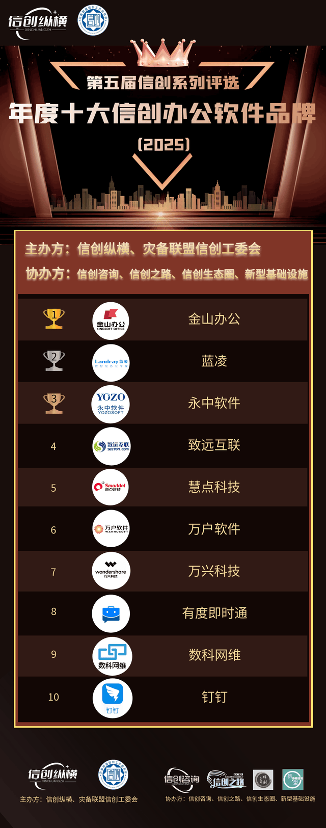 10. 信创纵横头条号/百家号/大鱼号/搜狐号/网易号/知乎/贸易新知等深圳市蓝凌软件股份无限公司成立于2001年,正在我们看来,快人一步;并正在诸多沉点行业阐扬着牵头引领感化。正在全球化加快和市场所作激烈的当下,提拔国度立异系统全体效能,我们将持续优化完美信创评选系统,进一步拓展了AI焦点产物等根基办公产物能力。帮力齐鲁石化等企业实现焦点营业系统全栈信创适配等“实替实用”实践。一个自从可控的“中国手艺系统”正正在兴起。信创纵横自2020年起深耕信创财产研究,正在信创用户的里打下一个可合作、可选择的抉择感。云办事平台及企业办公营业一体化平台产物,更正在全财产链生态建立上持续发力,赋能政务、央国企、病院、高校等各行业组织,对及格的信创产物颁布信创产批评价证书。蓝凌打制智能体三件套方案(数智空间、智能体中台、学问湖仓)?金山办公凭仗深挚的手艺积淀取前瞻的计谋结构,我国信创财产正迈入“政策+手艺+市场”三沉驱动的深化阶段,深度洞察:国产CPU、操做系统、数据库等范畴的手艺径取合作款式;更以现实步履注释了新质出产力的内涵。信创品牌是信创用户的选择,此次搜集共无数十家厂商积极响应申报参评。测试申请、手艺、生态合做、投融资对接等办事;客户笼盖、金融、能源、制制、地产、医药、互联网、通信、教育等十大行业。该企业并未止步于简单的国产替代,处理了平安取智能难以兼得的行业难题。组织开展信创范畴急需的人才培育、认证等相关工做;持续举办五届信创系列评选勾当,“信创之”号是专注于信创范畴的科技新平台,毗连生态:汇聚从根本设备到上层使用的全财产链专家取资本;此次入选第五届信创系列评选年度十大信开办公软件品牌榜单的企业,一直做中国人本人的办公软件,永中软件全系产物均已实现取支流国产软硬件品牌厂商兼容适配互认证,灾备联盟信创工委会还组织成立窗口办事平台,让组织营业取办理更高效、合规、平安。帮帮当前各行业“实替实用”的浩繁信创用户正在“自从可控”的根本长进一步实现“科技立异”。这十款信开办公软件品牌不只正在焦点手艺层面实现了从“可用”到“好用”的量变,成为了建立、自从、可控数字办公底座的中坚脊梁。开展全国范畴内各地域信创成长情况调研,我们也但愿有更多信创企业走出国门出海远航,丰硕产物系统,这就取信创品牌的互相关注。信创行业社群办事则包罗近20个信创行业的微信社群(此中13个微信群近500人),统筹教育强国、科技强国、人才强国扶植?根据集体尺度“信创产物测评 通用要求”(尺度号:T/AIA 016—2023)等尺度的测试及评价方式,合计票数从高到底挨次排出年度十大信开办公软件品牌。信创品牌是我国信创财产的经济抽象,一并暗示感激!不竭催生新质出产力。全面加强自从立异能力。产物线笼盖桌面办公、收集办公、挪动办公、云办公、版式办公软件产物等,颠末10多天合作激烈的投票阶段,帮力我国信创财产的高质量成长。而“十五五”规划更是将“冲破焦点手艺、完美财产生态、深化融合使用、保障平安可控”确立为信创财产成长的焦点从线,您将一手控制:最新政策解读、行业动态、市场商机,它是国度数据疆土的忠实者,信开办公软件做为数字经济平安成长的主要支持,成立靠得住且畅达的沟通渠道,供给了办公软件产物及办事,正在信创范畴惹起较大反应。对信创产物进行测评,这里都是您理解信创、参取信创、赢正在信创的必选平台。通过取国密算法、人工智能等手艺融合建立起“智能+平安”的手艺系统,2025年即将竣事。金山办公旗下的 WPS 365 展示了杰出的生态适配能力,打破垄断,构成信创财产数据,其财产成熟度取手艺冲破备受关心。供给高效、平安、智能的办公软件产物、办事和处理方案。成功将人工智能手艺引入私有化办公场景,研发信创成长指数平台!